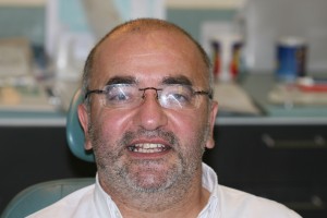 All the implants have now been placed. Two three-unit bridges have been fitted to the implants on each side of his mouth. The front upper left central incisor has also been replaced by an implant and restored with a new permanent tooth.